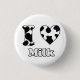 Ik houd van melk button. Tekst: I heart milk Afbeelding: in koeien print.