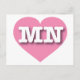 This postcard features a vibrant pink heart containing the bold, white, upper case letters MN, the official abbreviation for Minnesota, the north star state. The reverse side of the postcard is blank, awaiting your personalized text or handwritten sentiments.