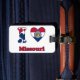 Leuke bagagelabel met de tekst: i love Missouri ( i heart Missouri) Het hart is met de vlag van de staat Missouri. Kleuren: blauw, rood en wit.