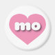 This magnet features a vibrant pink heart containing the bold, white, upper case letters MO, the official abbreviation for Missouri, the Show Me state.