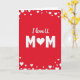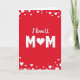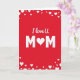 This card shows a solid red background that feels warm and loving right away. In the center, the message reads “I love U M❤️M” in white, with “I love U” written in a flowing, cursive letter style near the top of the main text. Just below it, “M❤️M” is in large capital letters, and the heart stands in for the “O” to clearly mean “MOM.” Small white hearts are scattered around the top and bottom edges, like a gentle frame around the words. The bright white text and hearts stand out strongly against the red, making everything easy to see at a glance. It feels meaningful because it keeps the message simple and direct, like saying what you really mean without overthinking it 🥰. This is a sweet way to remind a mom or someone you care about that your love is steady and close ❤️.