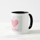 I was thrilled this came out so well. It is a very attractive mug with the colored handle and interior. Being able to personalize it was easy! It was designed for an end of the year thank you gift to the special recipient. perfect. Text lines up perfectly parallel to the top edge of the mug.