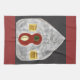 I Love Music Abstract Instruments Kitchen Towel with guitar and drums, plus strings, with brushed aluminum back, by Kristie Hubler