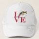 Tying into a monster muskie is an experience of a lifetime. Catch one and you are hooked. Full color life like image of a giant muskie replacing the "O" in Love.