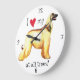Great price for a very nice product. Arrived a day early - unheard of these days. The outside gold area has a little more orange tone to it than shown in the picture. Great packing so product can't get damaged. I used the same packing to forward the clock to my brother and sister-on-law for the 50th wedding anniversary. Printing was just as expected - lovely!