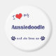 Show the world how much you love your Aussiedoodle (and that the feeling is mutual!). With a heart and two pawprints, the words read "I love my Aussiedoodle and she loves me". This design is specifically for a female dog (she), we also have variants available for a male dog (he) or multiple dogs (they). A perfect gift for yourself or the Aussiedoodle lover in your life, this design is available on a variety of gift and apparel items!