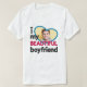 This cute t-shirt is the ideal gift for any boyfriend in love. The caption reads "I love (heart) my BEAUTIFUL boyfriend" in black and dark pink modern fonts. Easily personalizable by adding a custom photo in a big heart-shaped blue frame.