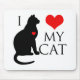Black silhouette of cat sitting with the expression, "I Love (using a heart as a symbol for the word love) my Cat."