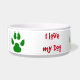 I absolutely love this product! I was a little concerned prior to buying it, but I was blown away by the quality of the item. The bowl is sturdy and arrived clean without any damage. The printing was crisp and clean and looks Better than I hoped! My dogs immediately knew these were for them and get very excited to pose with their new bowls! Definitely recommend and will purchase more in the future! The printing is crisp and well done. It looks absolutely beautiful on the bowl, and I can tell that it’s going to hold up well over time.