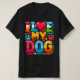 The T-shirt design features the phrase "I Love My Dog" in bold, playful lettering, with a heart symbol replacing the word "love." Beneath or around the text, there are cute dog-related illustrations, such as paw prints, bones, or a silhouette of a dog. The design gives off a warm, fun vibe, perfect for dog lovers to express their affection for their furry companions. The color palette is simple and cheerful, with contrasting colors to make the design pop on a variety of T-shirt backgrounds.