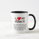 I LOVE MY FIANCÉ Custom Christian Mug with CUSTOMIZABLE TEXT. Simple, stylish INSPIRATIONAL CHRISTIAN Coffee Mug which says I LOVE MY FIANCÉ and includes red hearts. Underneath is text based on Bible verse from 1 Corinthians 13. An ideal gift for courting couples, Anniversaries, Christmas, Birthdays, VALENTINE'S, etc. You can add these to your merchandize table at relationship conferences and conventions, replace the Bible verse with your own motto, or give away as favor gifts. BOYFRIEND, GIRLFRIEND, HUSBAND, WIFE, FIANCÉ and FIANCÉE versions available.