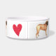 I love this bowl. It's nice and heavy and feels well made. I think Zazzle could make it even better however. This large bowl is actually on the small side for a large dog. I'd love to see one size larger. Also, if you want a colored background, there will be a rather thick strip of white on the top and the bottom. I wish I could have the entire face of the bowl printed in a color. The printing is crisp and clear and does a good job of showing off my Create With Photos running Portuguese Water Dog design.