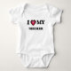 I love this onesie, it's adorable! The material is amazing so soft and the color is a perfect sky blue. When my daughter-in asked me to help with her Baby Shower, I was thrilled. It was co-ed & the theme was Cookie Monster. I had no idea that the whole world was after that big blue Monster. Thank goodness for Zazzle, I got most of the party supplies here. Then I found this onesie! They made my customization so easy. The colors are awesome. I wrote the word "Loved" across the bottom of the Cookie Monster in red letters when I was putting it together. I saw the preview & liked it. But to see it in person, OH, it was fantastic, they do exceptional work! I am so glad that I found this onesie/bodysuit. The production time and shipping were exactly what I was told, which made it easy to plan the party. Packaging was nice as well. If you are looking at this product, look no further, I highly recommend it! I'm certain that I'll be back to "design" whatever my new Grandson "needs.". The printing on the onesie/bodysuit is crisp, and clean. With perfect colors that blend well with the blue background of the basic material. We are so happy with how it came out.
