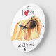 Great price for a very nice product. Arrived a day early - unheard of these days. The outside gold area has a little more orange tone to it than shown in the picture. Great packing so product can't get damaged. I used the same packing to forward the clock to my brother and sister-on-law for the 50th wedding anniversary. Printing was just as expected - lovely!