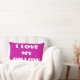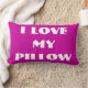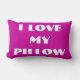 :I LOVE MY PILLOW" IN WHITE LETTERS AND PURPLE BACKGROUND.