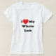 Women's Classic T Shirt In White Color and Lettering In Black Color and casual fun fashion statement apparel printed with customizable template text phrase I ❤️ love My White Lab on Hats, Shirts and Pet Products by TheFabricSeal print on demand shop at Zazzle.com #ZazzleMade https://www.zazzle.com/store/thefabricseal