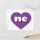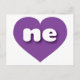 This postcard features a vibrant purple heart containing bold, rounded, white lower case letters ne, a playful version of the abbreviation for Nebraska, the cornhusker state. The reverse side of the postcard is blank, awaiting your handwritten sentiments or customized text.