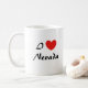 Custom mug featuring trendy minimalist text design with a red heart and "I Love Nevada" in brush script typography! Make it a nice gift for yourself or anyone who loves Nevada. Available in several different styles and colors. Choose 11oz or 15oz coffee mug.