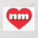 This postcard features a vibrant red heart containing the bold, white, rounded lower case letters nm, a playful abbreviation for New Mexico, the land of enchantment. The reverse side of the card is blank, awaiting your personalized text or handwritten sentiments.