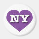 This magnet features a vibrant purple heart containing the bold, white, upper case letters NY, the official abbreviation for the state of New York.