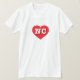 This t-shirt features a vibrant red heart containing the bold, white, upper case letters NC, the official abbreviation for North Carolina, the tar heel state.