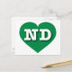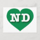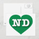 This postcard features a vibrant green heart containing the bold, white, upper-case letters ND, the official abbreviation for North Dakota, the peace garden state. The reverse side of the card is blank, awaiting your handwritten sentiments or personalized text.