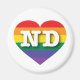 This magnet features a rainbow pride heart overlaid by the bold, white, capital letters ND, the official abbreviation for North Dakota, the peace garden state. Show your true colors, support marriage equality, and celebrate gay pride.