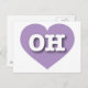 This postcard features a mellow lavender heart containing the bold, white, upper-case letters OH, the official abbreviation for Ohio, the buckeye state. The reverse side of the postcard is blank, awaiting your handwritten sentiments or personalized text. Choose font style, size, and color.