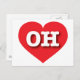 This postcard features a vibrant red heart containing the bold, white, upper case letters OH, the official abbreviation for Ohio, the buckeye state. The reverse side of the postcard is blank, awaiting your handwritten sentiments or customized text.