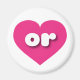 This magnet features a vibrant hot pink heart containing the bold, white, rounded lower case letters or, a playful abbreviation for the state of Oregon, the beaver state.