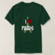 "I Love Paris," Eiffel Tower, custom-designed dark-colored shirt with white lettering.