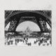 Vintage photo of the Eiffel Tower in Paris from early 20th century. Perspective is close to the base of the tower. black and white photo.