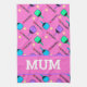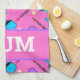 I love pickleball on pastel pink background. Perfect as a gift for pickleball player. kitchen towel with pink pickleball motif and custom text