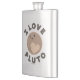 The product is a good size and came exactly as it was pictured. The lid is not attached to the flask, which could be dangerous on drunken nights... The print came out surprisingly well and looks very sharp. Would definitely recommend.
