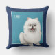 You may personalize the pillow by editing the name on the front of the pillow, just click on the Personalize button. The back side has a cute white Pomeranian on blue square and custom text.