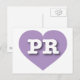 This postcard features a lavender heart containing the bold, white, upper-case letters PR, the official abbreviation for Puerto Rico, the isle of enchantment. The reverse side of the postcard is blank, awaiting your handwritten sentiments or personalized text. Choose font style, size, and color.