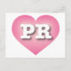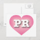 This postcard features a calm, cool pink heart with a white-washed center containing the bold, white, upper case letters PR, the official abbreviation for Puerto Rico, the enchanted isle. The reverse side of the postcard is blank, awaiting your customized text or handwritten sentiments.