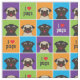I Love Pugs Color Squares Large Pattern Fabric
