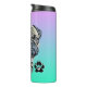 Cute Pug and paw print, I love Pugs water bottle. Ai art depicting a cute Pug. Sweet gift for dog owners or Pug lovers. Purple and teal background.