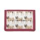 Red trifold wallet with cute pug in tile pattern with "I Love Pugs" written in center.