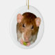 This adorable little dumbo rat certainly enjoys her tasty treats. This ornament features a beautiful pet rat enjoying a snack. On the back of the ornament it says "I love rats". This is the perfect gift for any rat lover and there are plenty of us out there.
