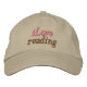Fun gift for librarians and book lovers, this real embroidery stitched cap is perfect for friends who love to read or school or community librarians on your holiday shopping list. I Love Reading quote.