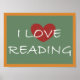 This poster displays the text "I Love Reading" on a chalkboard background. This is a great item for school hallways, classrooms, or libraries.