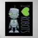 Vector cartoon illustration of a cute and happy little robot with I Love Robots text. Keywords: robot, droid, android, machine, future, happy, friendly, cute, humor, cartoon, love, adorable, adorbs, silly
