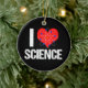I Love Science Christmas ornament. A heart with an atom model wrapped around it makes a great gift for a scientist. Science is so cool.