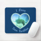 Do you love sea turtles? I Love Sea Turtles in blue script surrounding a blue-bordered heart containing a swimming Green Sea Turtle.