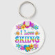 A beautiful way to show your love for skiing. Enjoy this fun design with colorful hearts, flowers and the words - I Love Skiing.