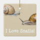 I Love Snails Snail Design with two Helix snails on a light tan/ brown background. Writing says 'I love snails' Perfect gift for someone with pet snails