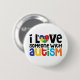 "I love someone with autism" button for Autism Awareness. A great way to show your support by wearing this button for Walks, Runs, Marathons, Fundraisers, Charity Events to your School, Office etc. Perfect to wear during Autism Awareness Month in April. Featuring cute and colorful typography in blue, red, green, orange and yellow with puzzle pieces in a heart, this button with a positive message is a great way for bringing awareness to this important issue. ©TeacherTribeMerch