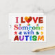 Inspirational quote of “I Love Someone with AUTISM” and a beautiful heart with Autism puzzles to support autistic children and their families for a bright future.